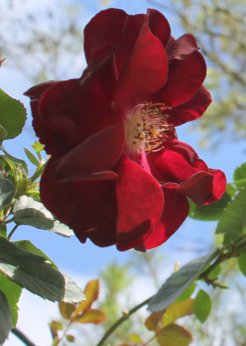 This is the first time this beautiful rose has bloomed in the eight years we have been at our home. My father moved it from under the shaded trees about a year ago, not believing it would ever bloom. A few times I asked the Lord to reveal the flower, to have the rose blossom that He may be given the glory, as my father who is an avid, really avid gardener (his life passion, one who knows most of the Latin names) didn’t think it was possible. The leaves had always flourished even in the shade; but as to the colour of the flower, we had no idea.