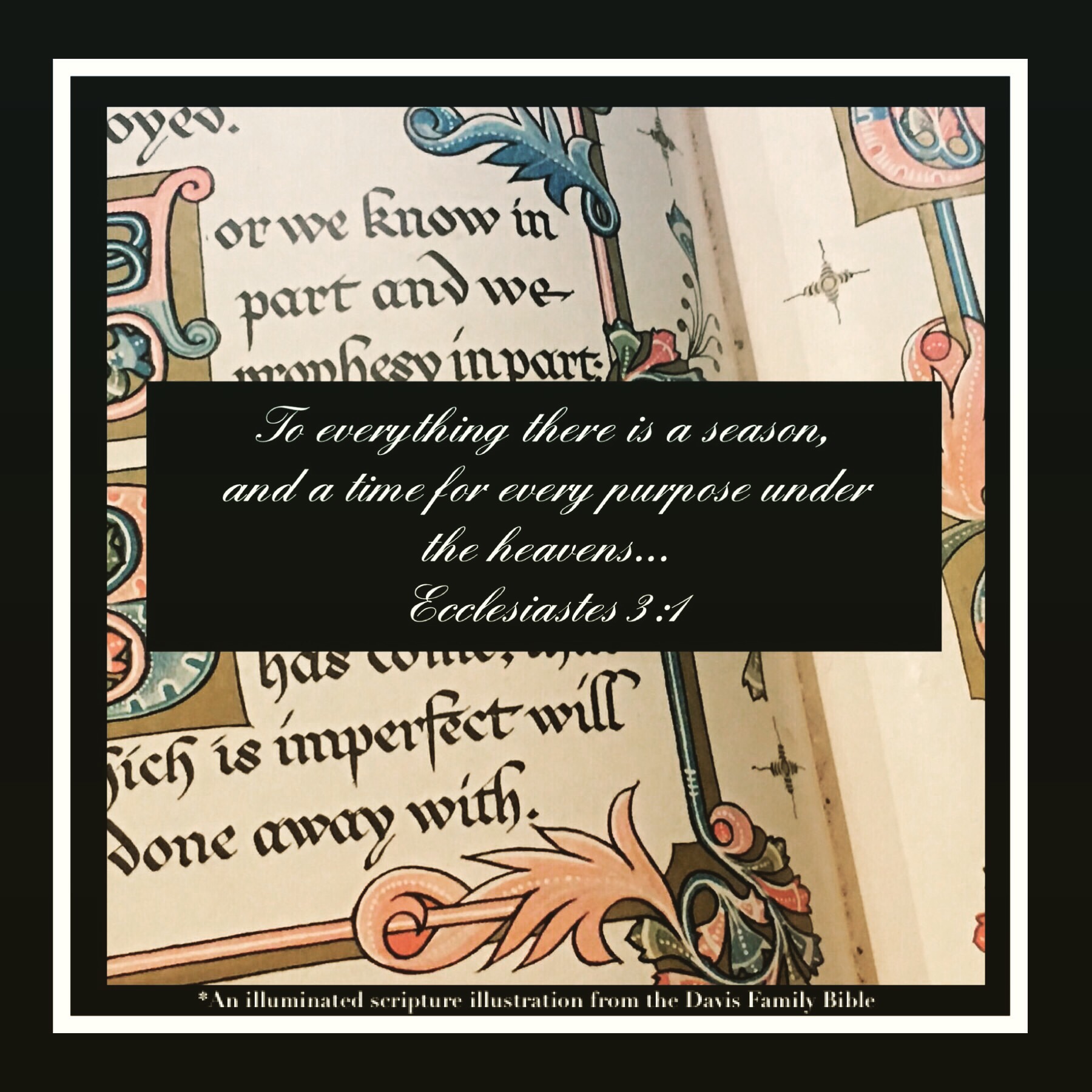 ~ King Solomon wrote “There is a time for everything, and a season for every activity under the heavens…” Ecclesiastes 3:1 (NIV)